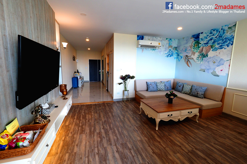 ครอบครัวเราพักห้อง 2 แบบนะครับ มาดูแบบแรกกันก่อน เป็นห้องสวีท ขนาด 90 ตร.ม.