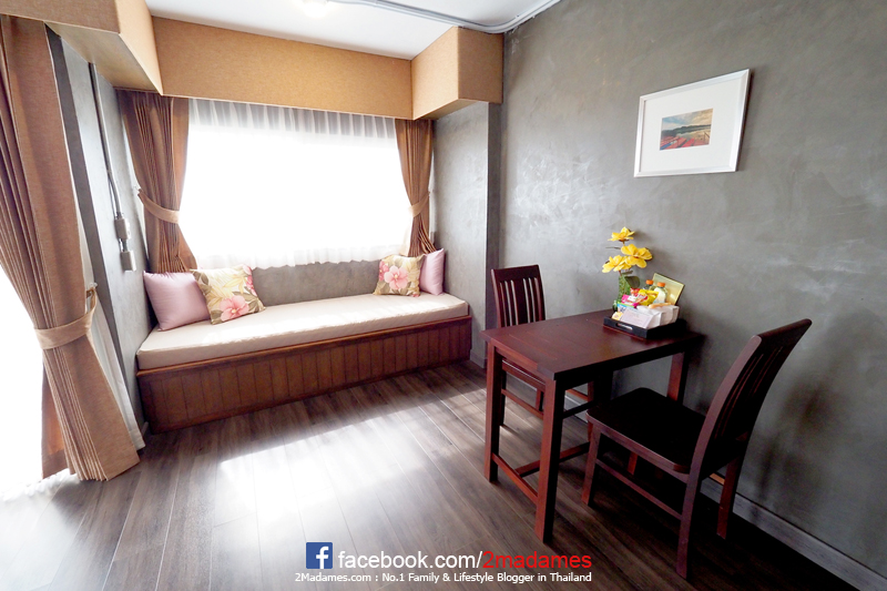 หน้าห้องพักมีม้านั่ง แวะถ่ายภาพกันหน่อย