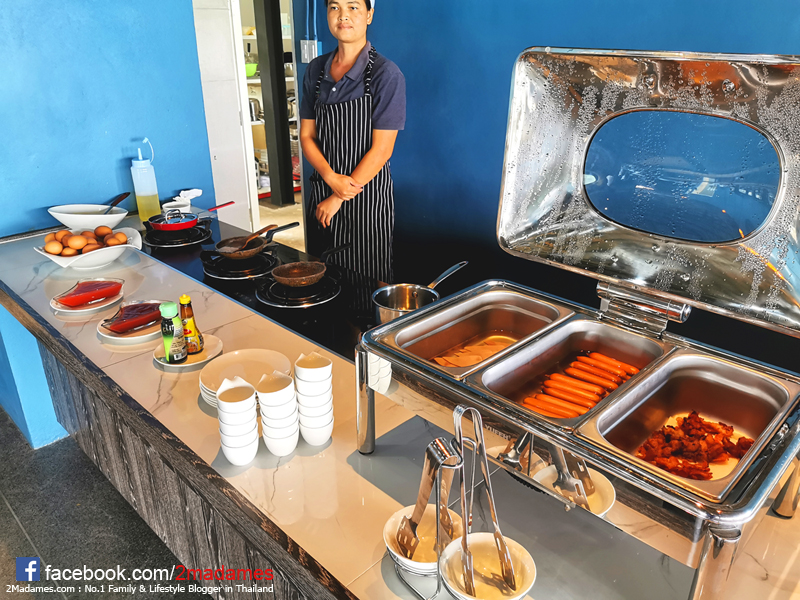 ไลน์อาหารเช้าที่นี่เป็นแบบตักเอง จะเน้นไปที่อาหารไทย แกง ข้าวต้ม ขนมปังและสลัดต่างๆ