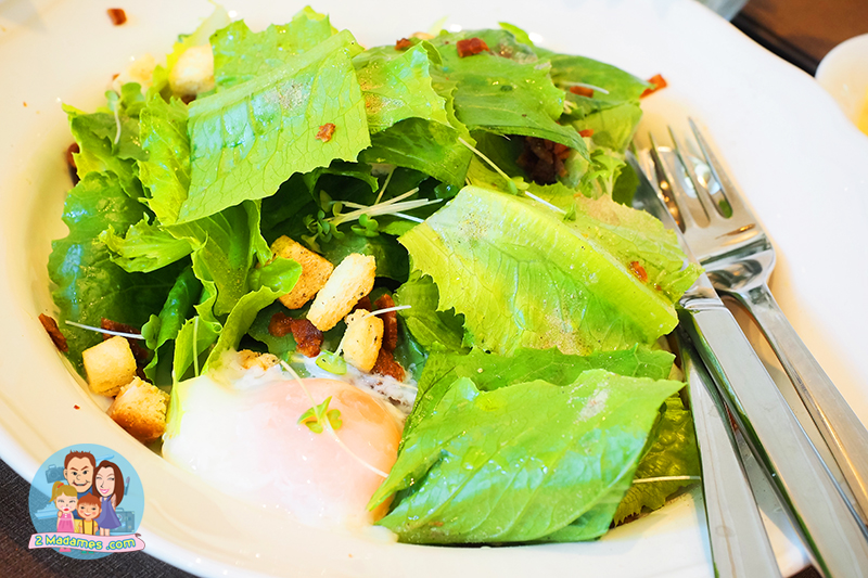 มื้อเที่ยงเราเลยไม่ต้องออกไปไหนไกล จัดการให้อิ่มกันที่นี่เลย เริ่มจานแรกด้วยอะไรเบาๆอย่างซีซาร์สลัดไข่ออนเซน สนนราคาที่ 190++ บาท ถือว่าไม่แพงเลยนะ ร้านอาหารบางร้านนี่ราคาแรงกว่านี้มาก ส่วนรสชาติต้องบอกเลยว่าอร่อยและยิ่งอร่อยมากขึ้นเพราะมีไข่ออนเซนคลุกเคล้าไปด้วยนี่ล่ะ