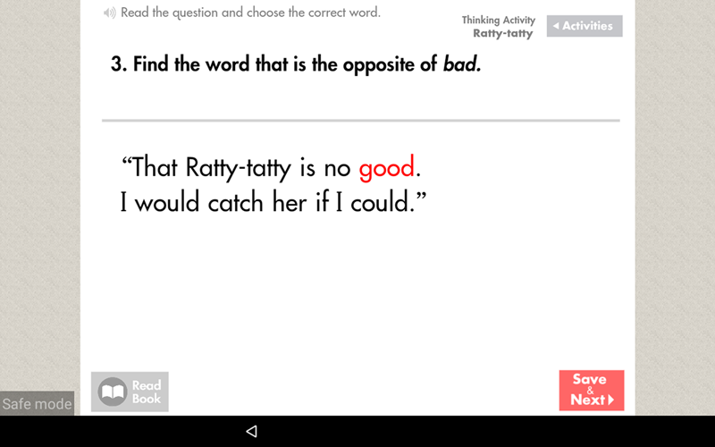 เปิดหน้าจอมาจะมีแค่ 3 อย่างที่เข้าได้ ก็คือ QR Scanner ไส้ Scanner เพื่อเปิด Browser, Super Reader คือแอพพลิเคชั่นที่ติดเครื่องมา และ Parent Mode ที่ไว้สลับใช้งานเป็นแท็ปเล็ตทั่วไป (โดยเด็กๆจะไม่สามารถเข้าไปเล่นอย่างอื่นได้ ถ้าไม่ทราบ Password)