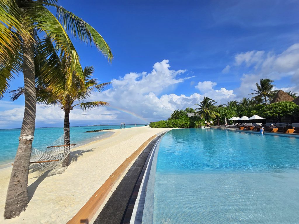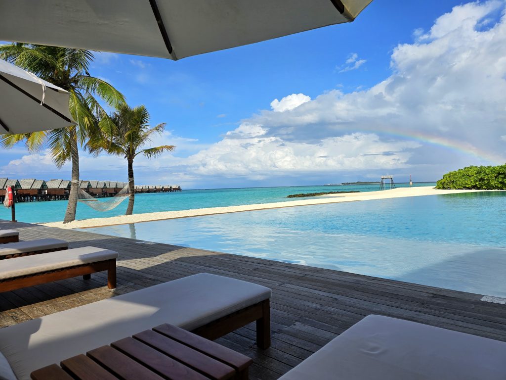 ปล.อากาศที่มัลดีฟส์เดือนสิงหาแปรปรวนสุดๆ เดี๋ยวแดดออก แปปๆฝนตก แล้วแดดออกใหม่ สลับได้ทั้งวัน ภาพนี้เลยมีถ่ายติดรุ้งกินน้ำด้วย