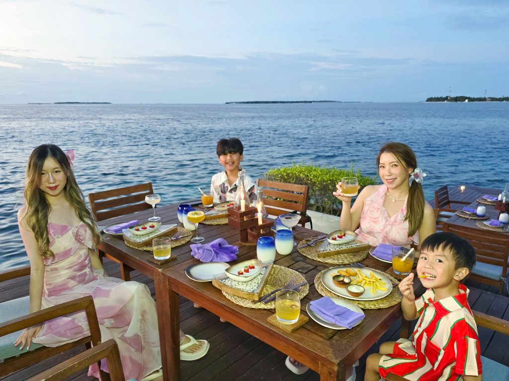 ใช้เวลาเดินทางประมาณ 4 ชั่วโมง 20 นาที ก็ถึงอาคารผู้โดยสาร จะมีเจ้าหน้าที่โรงแรมพาพวกเราไปเช็คอิน Seaplane ต่อ ที่พิเศษมากๆ คือ มีห้องรับรองของรีสอร์ทเลย นั่งรอ Seaplane ในห้องแอร์ไม่ร้อน มีอาหาร ขนม เครื่องดื่มบริการฟรี มีห้องเด็กเล็ก ที่ชอบมากเป็นพิเศษ คือมีนวดฟรีคนละ 15 นาทีด้วย