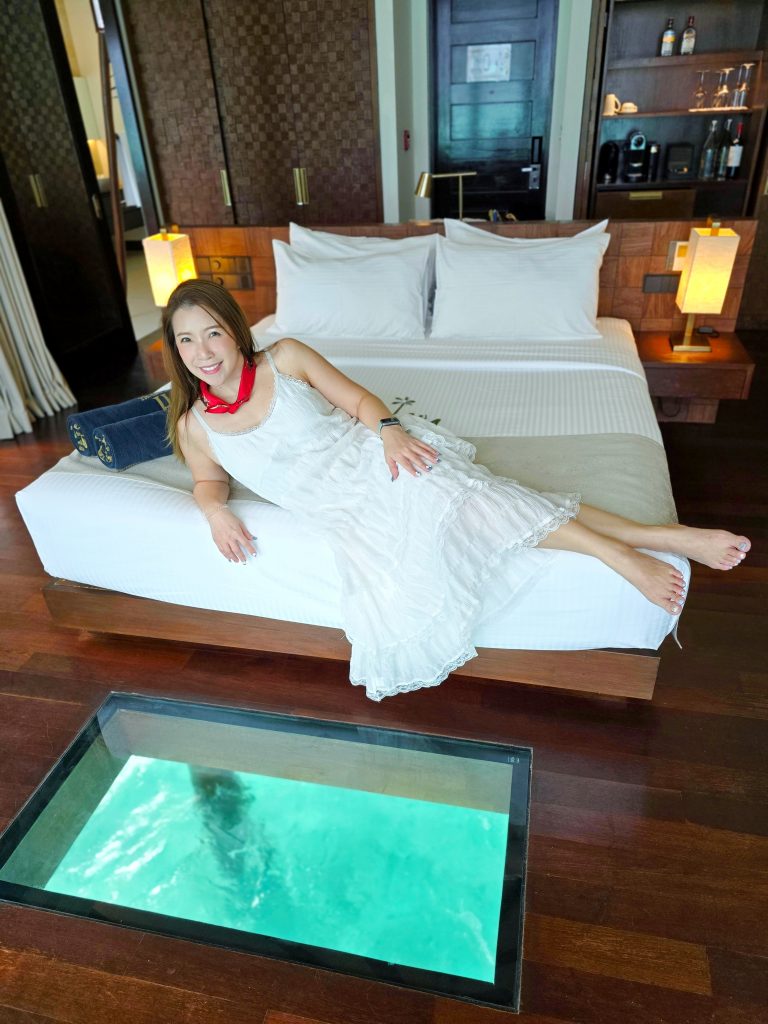 มีช่องกระจกที่พื้นมองเห็นปลาและน้ำทะเลด้วยนะ