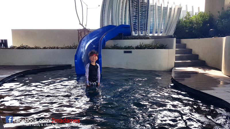 เล่นน้ำในสวนน้ำถึงบ่าย เย็นๆเด็กๆยังขอขึ้นมาเล่นน้ำกันที่ชั้น 26 ต่ออีก น้องกายชอบเล่นโซนสระเด็กมากๆ เพราะว่ามีสไลด์เดอร์ให้เล่นด้วย