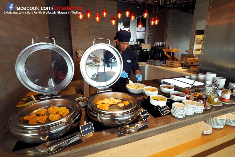 สำหรับไลน์อาหารเช้าของที่นี่ก็มีครบครันตามมาตรฐาน โซนนี้เรียกว่าเป็นมุมอาหารเช้าแบบฝรั่ง มีทั้งสเตชั่นไข่ที่ทำสดใหม่ ไส้กรอก เบคอนก็อยู่มุมนี้