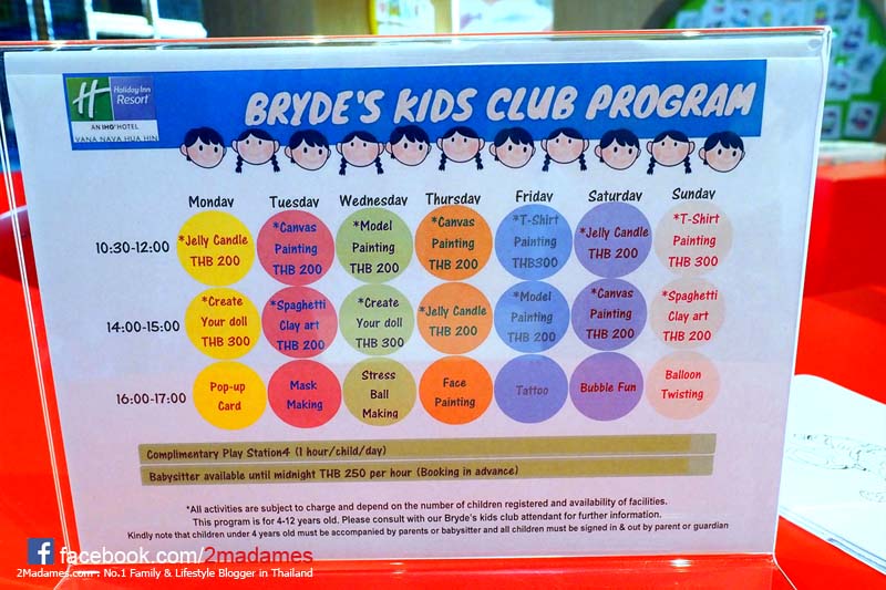 ที่ Bryde’s Kids Club จะมีตารางเวลาทำกิจกรรมต่างๆด้วย ก็มีทั้งฟรีและมีค่าใช้จ่ายเพิ่มเติมนะ