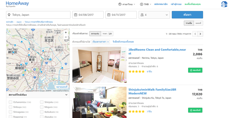 ตัวอย่างเช่น ครอบครัวผมวางแผนไว้ว่าจะไปเที่ยวโตเกียวกันประมาณช่วงสงกรานต์ปีหน้า ก็ค้นหาเลย แว่บแรกขึ้นมา โอโห้ ที่พัก 2 ห้องนอนราคาไม่แพงเลย