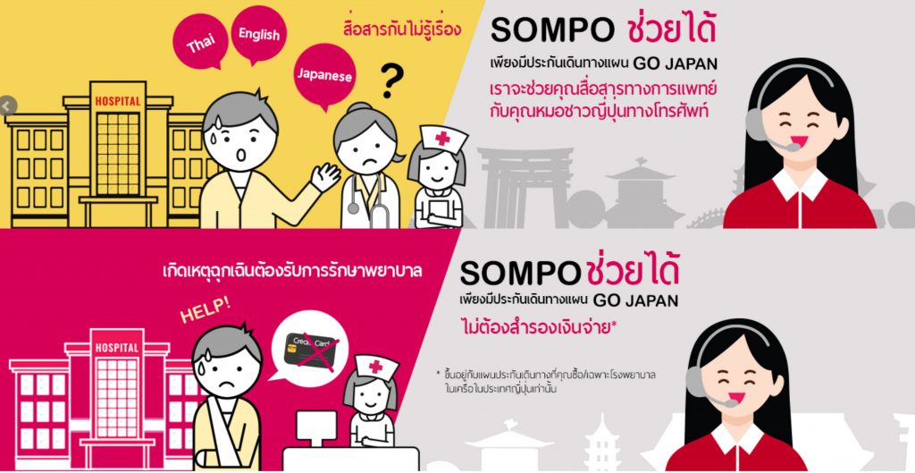 5.) เราใช้ประกันการเดินทางแผน Go JAPAN ของ SOMPO ครับ ข้อดีหลักๆของประกันการเดินทาง SOMPO เลย คือ เจ้านี้เป็นเจ้าใหญ่ของญี่ปุ่น น่าเชื่อถือ เวลาเจ็บป่วยรักษาได้เลยกับโรงพยาบาลในเครือของเค้า ไม่ต้องสำรองจ่ายเงิน แถมมีคนช่วยสื่อสารภาษาญี่ปุ่นกับคุณหมอด้วย