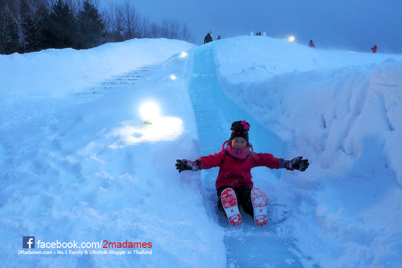 ทางเข้าหมู่บ้านจะมีสไลด์เดอร์แบบน้ำแข็งแท้ๆให้เล่นด้วยนะ