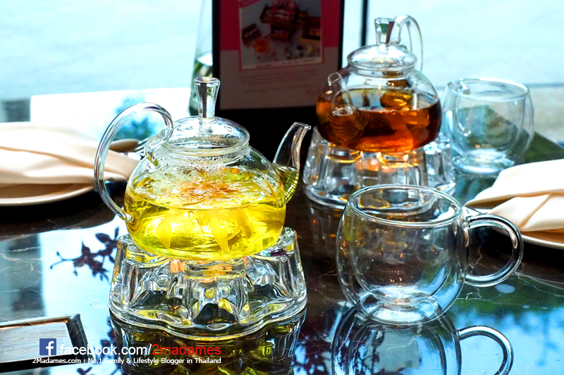 สำหรับเครื่องดื่มในเซ็ต ก็จะสามารถเลือกชาได้ 2 กลิ่น มีทั้งชาฝรั่ง 6 รสชาติ ที่ใช้ชาชั้นดีอย่าง Mariage Freres และชาดอกไม้อีก 4 รสชาติ เสิร์ฟมา 2 กา และยังสามารถรีฟีลน้ำร้อนได้อีกกาละหนึ่งครั้ง