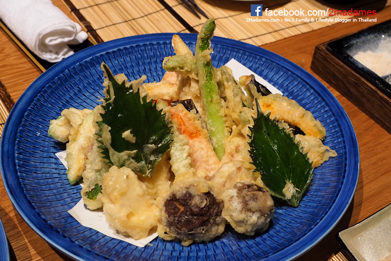จานแรกนี้เป็นเทมปุระที่รวมๆพวกเนื้อสัตว์ต่างๆมาก่อน มีทั้งกุ้ง, ขาปู, ปลาทรายขาว, ปลาทูญี่ปุ่น, ไข่นกกระทา, ปลาหมึก, ทาโกะหนวดปลาหมึกยักษ์