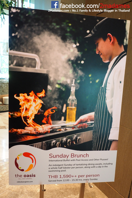 เรื่องกินยังไม่จบนะจ๊ะ เพราะทุกๆวันอาทิตย์มื้อเที่ยงทาง Hotel Nikko Bangkok ที่ห้องอาหาร The Oasis มีจัด Sunday Brunch with Pool Access ที่กินเสร็จสามารถกระโดดลงสระน้ำข้างๆห้องอาหารได้เลย ลูกค้าที่ไม่ได้เข้าพักก็สามารถลงเล่นน้ำที่สระว่ายน้ำของโรงแรมได้