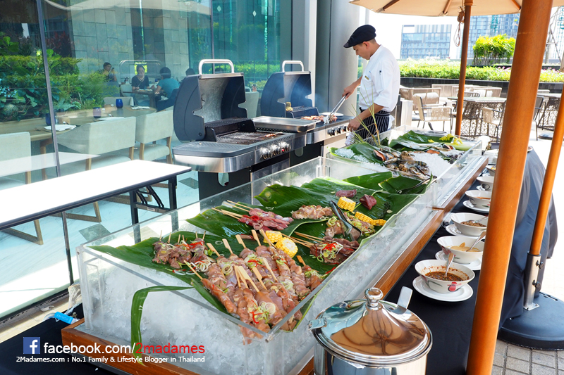 ด้านนอกมีเชฟปิ้งย่างบาร์บีคิวให้ด้วย ส่วนนี้ต้องเอาตัวหนีบเบอร์โต๊ะมาหนีบที่จาน แล้วเลือกเนื้อสัตว์ที่เราต้องการเลย มีทั้งกุ้ง ปลา เนื้อ หมู ไก่ ถ่ายไลน์มาโหรงเหรงมาก เพราะพวกเราเพิ่งจะรู้ว่ามีโซนด้านนี้ตอนจะหมดเวลามื้ออาหารแล้วจ้า