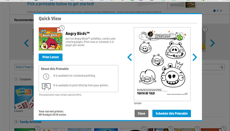 พอลงเลือกเมนู Printable จากหน้าจอ ก็จะมีแอพต่างๆให้เลือก ซึ่งมีให้เลือกเยอะซะด้วย เช่น แอพระบายสี Angry Birds ของเด็กเล็กๆอย่างน้องกาย หรือจะเป็นแอพตัดตุ๊กตากระดาษของเด็กผู้หญิงอย่างน้องเกรซ
