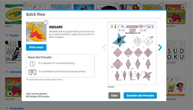 พอเลือกเข้าไป Printer จะให้เลือกว่าจะ Print เลยหรือไม่ หรือจะตั้งเวลาไว้ก่อน ซึ่งที่ผมชอบคือการตั้งเวลาไว้ก่อน ซึ่งดีมากเลยครับ ตัวอย่างเช่น ผมสามารถตกลงกับเด็กๆให้รีบนอน แล้วตอนเช้าใครตื่นก่อนจะได้รีบมาเล่นพับกระดาษจาก Printer ที่ตั้งเวลาพิมพ์ไว้ตอนเช้าก็ได้ หรือว่าจังหวะที่พ่อแม่ต้องออกไปทำธุระ ก็สามารถตั้งเวลาพิมพ์กระดาษทำกิจกรรมต่างๆไว้ ฝากให้คุณย่าคุณยาย อาม่า หรือ พี่เลี้ยงหยิบออกจากเครื่องมาให้เด็กๆเล่นเลยก็ได้