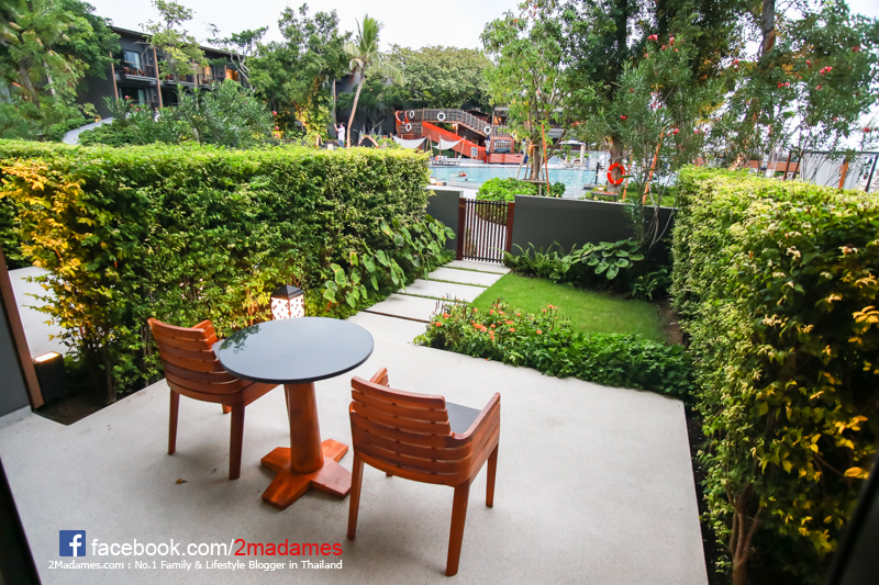 ห้องของเรามีระเบียงใกล้กับสระว่ายน้ำ เดินไปนิดเดียว เล่นน้ำได้เลย