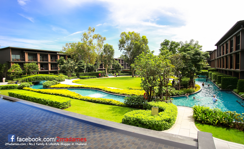 ถัดเข้ามาบริเวณรีสอร์ทจะมีสระว่ายน้ำทำเป็นแม่น้ำสายยาววนไปรอบใหญ่มาก