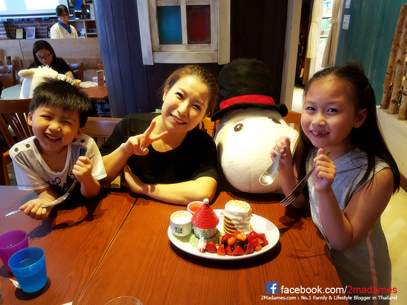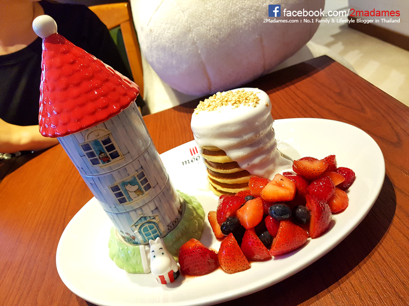ที่พวกเราสั่งไปเป็น Moomin Café Original Homemade Pancake เสิร์ฟพร้อมมิกซ์เบอร์รี่รวมๆกันมา ในบ้าน Moomin จะมีของหวานอยู่ด้วย 3 ชนิด ส่วนตัวตุ๊กตามูมินเซรามิคตัวเล็กๆเค้าให้กลับ้านเลยน้า