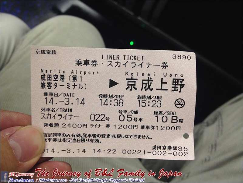 ตั๋ว skyliner หน้าตาจะเป็นแบบนี้นะครับ มีระบุที่นั่ง รถไฟตู้ไหนชัดเจน แต่ผมก็ยังพลาดขึ้นผิดตู้ ^^