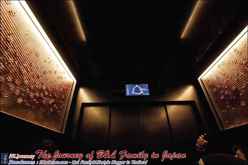 บรรยากาศภายในลิฟท์นะครับ จะมีพนักงานคอยจัดคิวอยู่ด้านนอก ลิฟท์แต่ละตัวน่าจะตกแต่งคนละแบบกัน เพราะขาขึ้นขาลงผมขึ้นลิฟท์คนละตัว ข้างในก็คนละแบบครับ