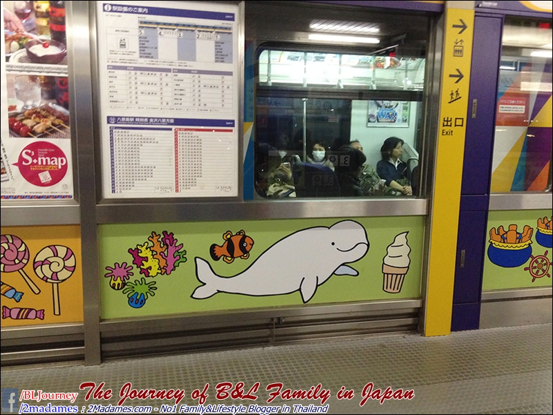 เวลา 10 โมง 45 โดยประมาณ เรามาถึงสถานี Hakkeijima ครับ สังเกตจากรูป Beluga ที่สถานีได้เลยครับ
