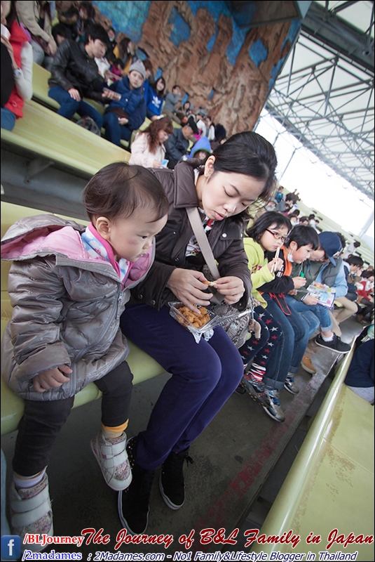 เรามาถึงจุดแสดงก่อนเวลาเล็กน้อย มีพนักงานเดินขายนักเก็ต กับของกินเล็กน้อย ระหว่างรอครับ ถ้าสังเกตจะเห็นรอยช้ำที่แก้มขวาของเบลล่า เนื่องจากคึกมากตอนเจอเต่า วิ่งไปกระแทกขอบรั้วเลยต้องมีการเสียน้ำตาเล็กน้อย T-T