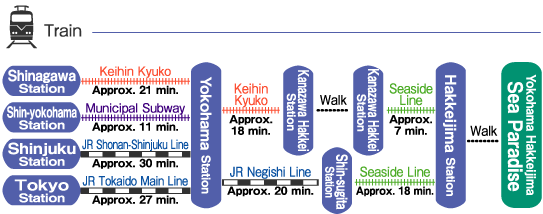 ตามโปรแกรมที่ตั้งใจวันนี้เราจะไปเที่ยว Yokohama กัน โดยเน้นหลักที่ Yokohama Hakkeijima Sea Paradise ก่อน ซึ่งเราก็รอผ่านช่วง rush hour ให้เรียบร้อยก่อน เราจึงเริ่มเดินทางตอน 9 โมง การเดินทางก็ไม่ยากครับ เราเลือกการเดินทางที่เปลี่ยนรถไฟน้อยที่สุด จึงได้เลือกเส้นทางมาตามนี้ครับ