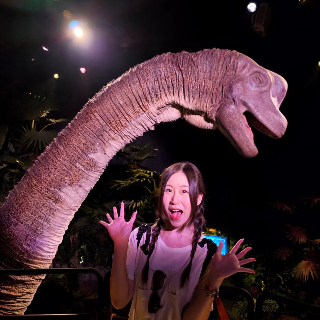 เข้ามาก็จะเจอกับไดโนเสาร์พันธุ์ต่างๆ เราสามารถเข้าไปถ่ายภาพอย่างใกล้ชิด ไฮไลท์อยู่ที่ได้เจอเจ้าหน้าที่อุ้มเจ้าลูกไดโนเสาร์ตัวเล็ก ให้เราสามารถลูบหัวและถ่ายรูปกับมันได้ด้วย