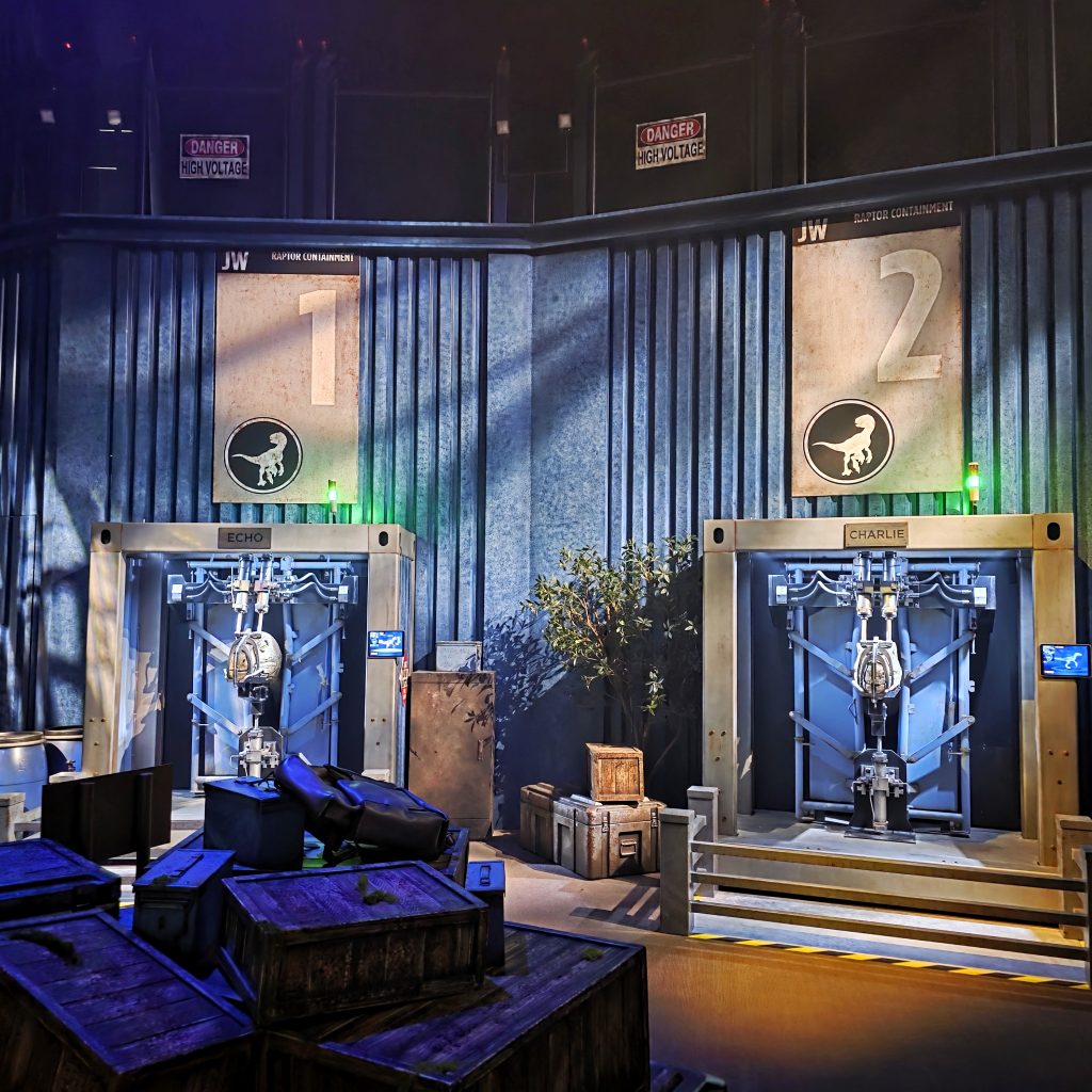 เข้าไปต่อ จะเป็นโซนแรปเตอร์ 4 ตัว โดย 3 ตัวจะถูกจับไว้ แต่เจ้าบูลตัวเดียวที่จะไปแสดงให้เราฝึกสอนมันอีกที