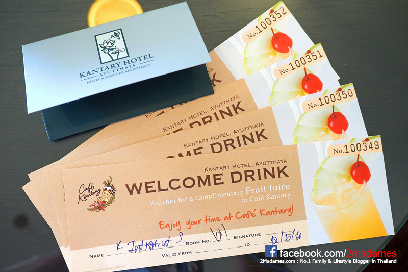 เค้าไม่มี Welcome Drink มาเสิร์ฟนะ แต่ให้เป็นคูปองไปรับที่ Café Kantary ร้านขนมที่อยู่ด้านหน้าโรงแรมแทน