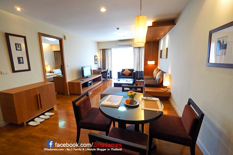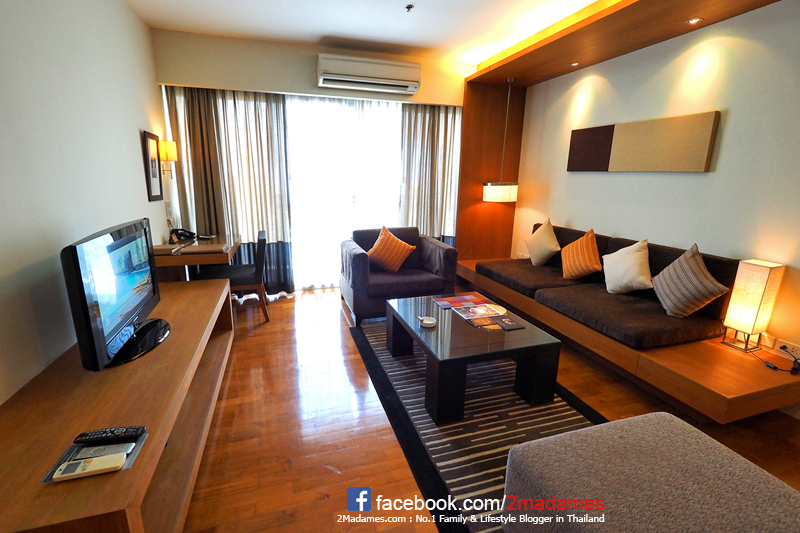 เช็คอินแล้วขึ้นมาบนห้องพักเลยดีกว่า ห้องของครอบครัวเราคืนนี้เป็นแบบ One Bedroom Suite ห้องใหญ่มากครับ ขนาดพื้นที่ 74 ตร.ม. มี 1 ห้องนอน 1 ห้องน้ำ ห้องนั่งเล่นกว้างมาก ราคาจากโปรโมชั่น Weekend Special จะอยู่ที่คืนละ 2,500 บาทรวมอาหารเช้าอีก 2 คน