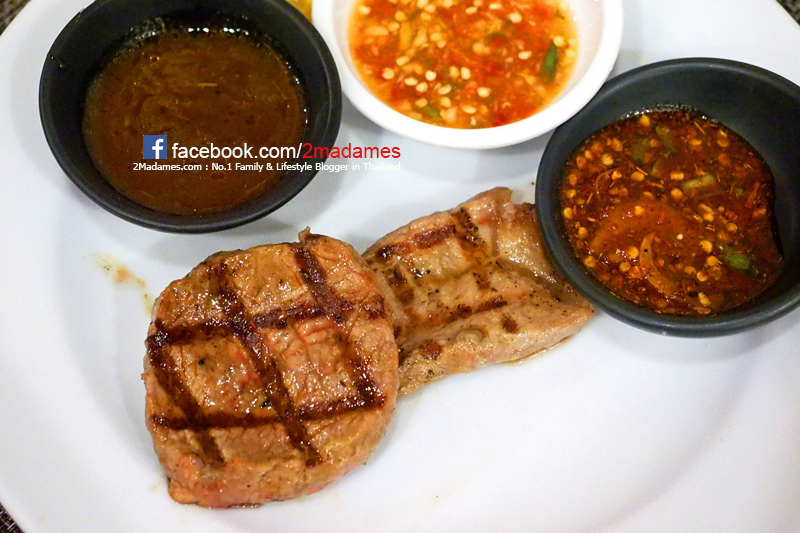 สเต็กย่างร้อนๆ เลือกชิ้นเนื้อส่งให้พนักงานย่าง บอกเบอร์โต๊ะไป เดี๋ยวพนักงานมาเสิร์ฟให้ถึงโต๊ะเลย ชอบตรงน้ำจิ้มมีแบบซีฟู๊ด จิ้มแจ๋วแบบไทยๆด้วย