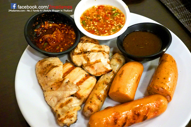 คุณนายแอนลดน้ำหนักอยู่ เลยเลือกทานสเต็กปลากะพง และอกไก่ ย่างมาสุกกำลังดีเลย เนื้อไม่ด้านเกินไป กำลังฉ่ำพออร่อย ส่วนไส้กรอกนี่ของเด็กๆจ้า