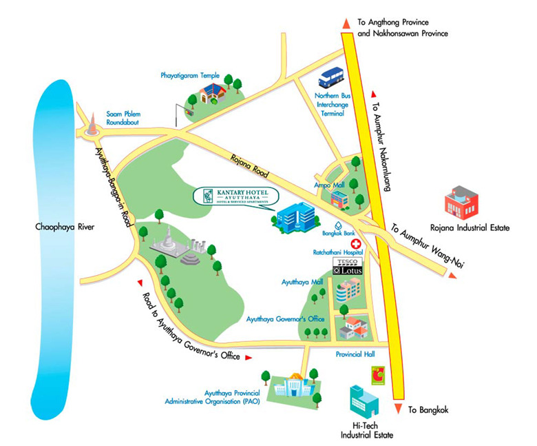 แผนที่การเดินทางมายังโรงแรมแคนทารีโฮเทล อยุธยา Kantary Hotel Ayutthaya