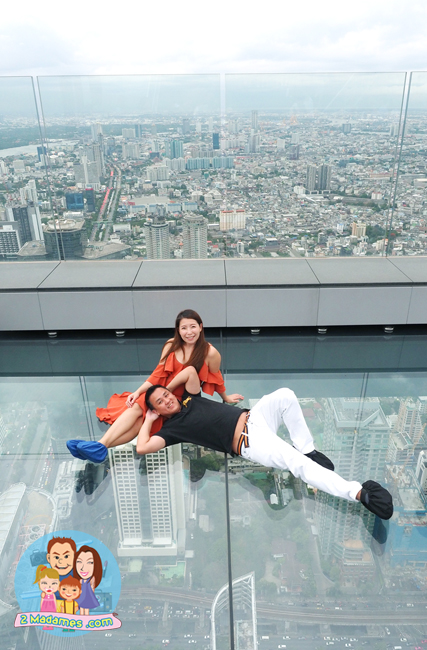 อีกไฮไลท์สำคัญของ MAHANAKHON SKYWALK ก็คือ การเดินและถ่ายภาพบริเวณพื้นกระจกลอยฟ้า Glass Tray ที่สามารถมองลงไปเห็นพื้นดินจากชั้น 78 เลยทีเดียว เดินแล้วหวาดเสียวกับความสูงเสียดฟ้าอยู่นะ บอกเลย