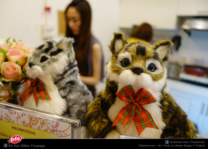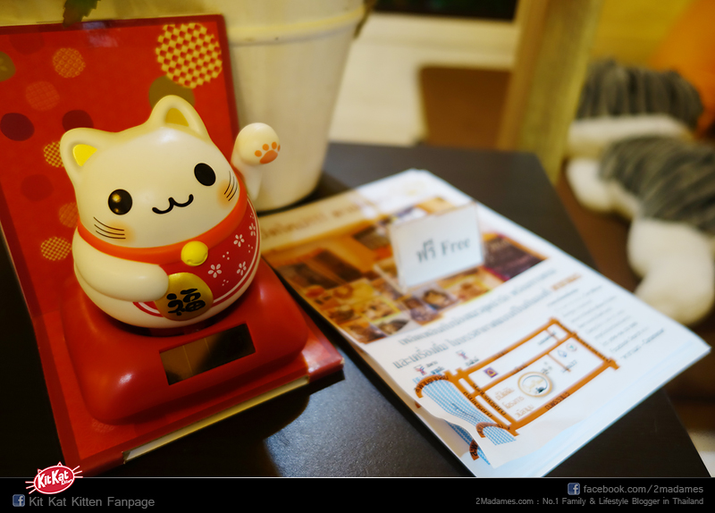บน Counter จะมีหุ่นน้องเหมียว 2 ตัวที่กดปุมแล้วจะขยับได้ไว้คอยต้อนรับค่ะ วันที่เหมียวๆไป คุณเจ้าของร้านเค้าลองกดให้เหมียวๆดู เหมียวๆก็เลยรู้ว่าตุ๊กตาแมวนี้เป็นแบบที่เต้นได้และมีเสียงเพลง