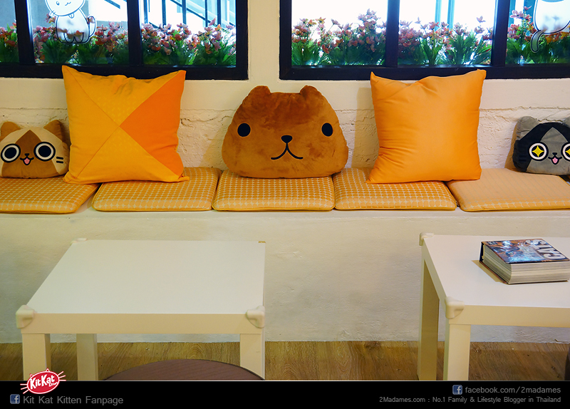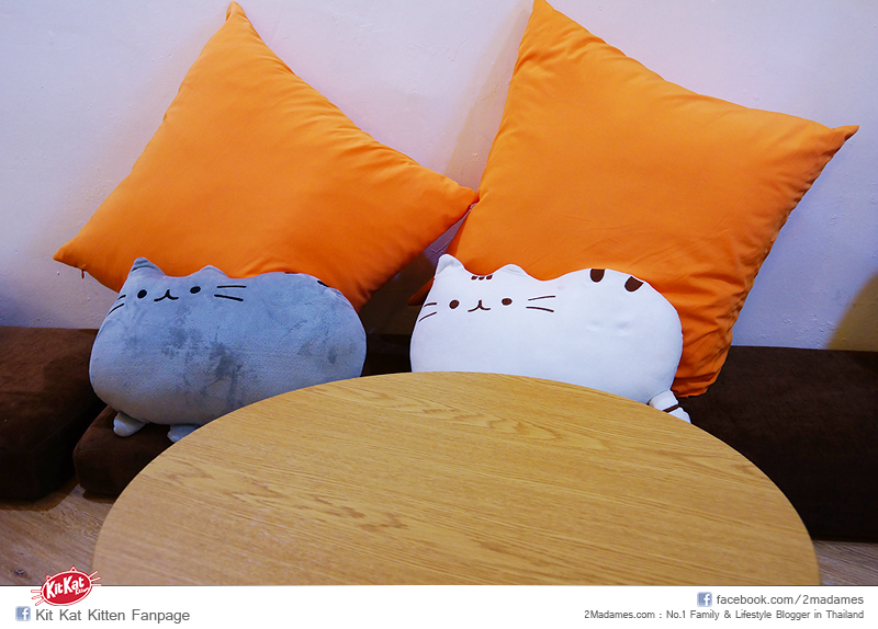 อีกฝั่งของโต๊ะจะมีเบาะรองนั่งเป็นรูปรอยเท้าแมวน่ารักๆแบบนี้ค่ะ