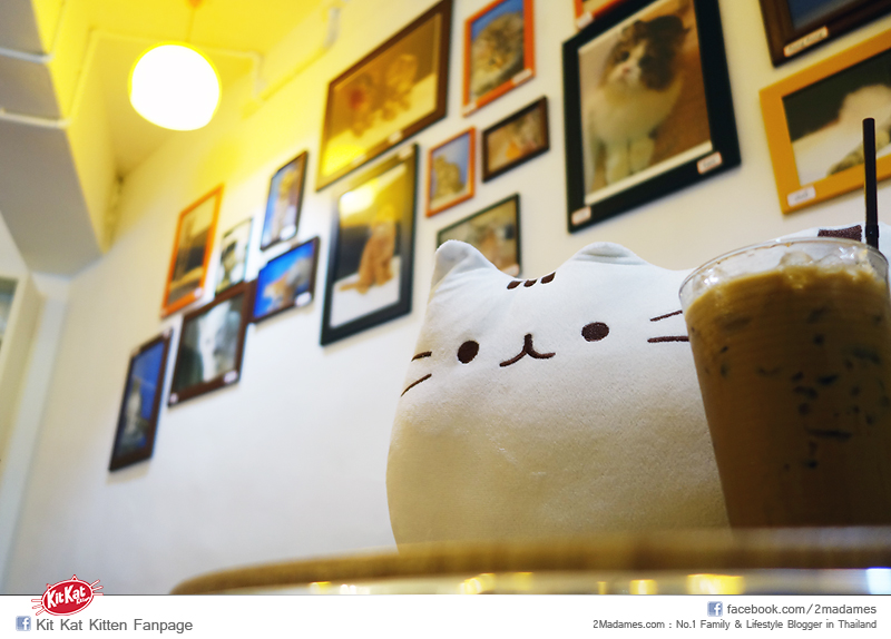 มองไปด้านหลังบนผนังกำแพง จะมี Gallery ภาพน้องแมวในร้าน พร้อมกับชื่อน้องแมวประกอบไว้ค่ะ