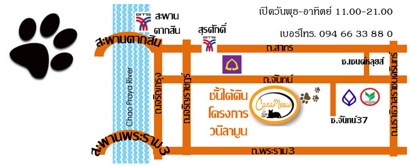 ภาพแผนที่นี้เหมียวๆได้มาจาก Facebook ของร้าน CaraMeow Café ค่่ะ