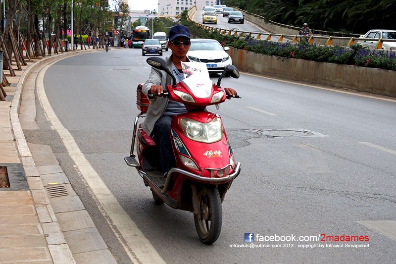 ในเมืองคุนหมิงนั้น จักรยานธรรมดาแทบไม่ค่อยจะเห็นชาวคุนหมิงใช้แล้ว แต่เป็นมอเตอร์ไซค์ไฟฟ้าที่ได้รับความนิยมกันมาก มอเตอร์ไซค์ไฟฟ้าเหล่านี้วิ่งได้ประมาณ 50-60 km/hr เครื่องยนต์เงียบไม่เสียงดังเลย แถมทำให้เกิดมลพิษต่ำกว่ามอเตอร์ไซค์ทั่วไปอีกด้วย