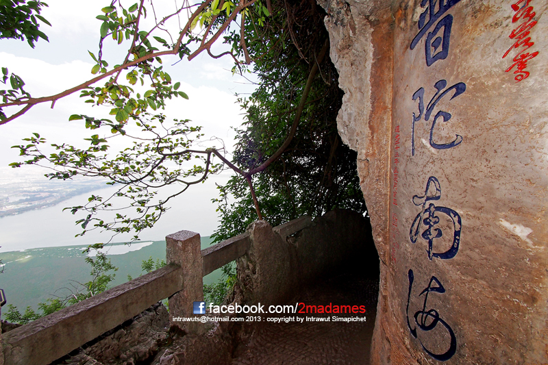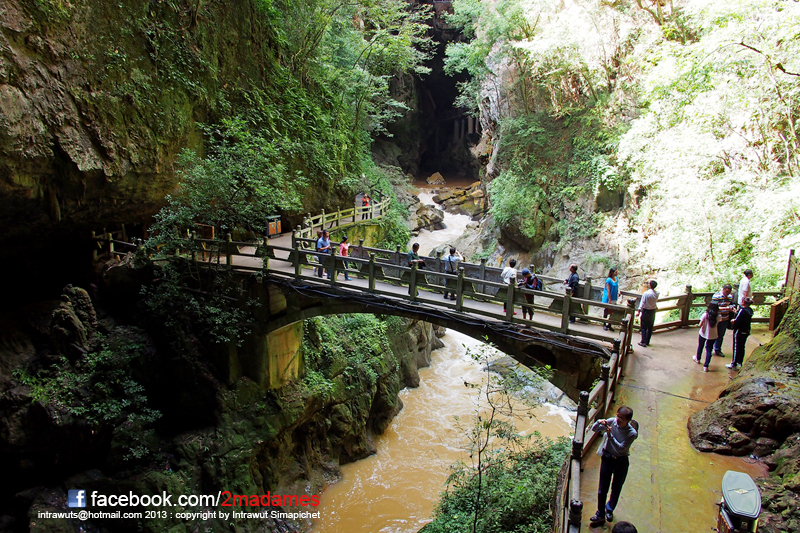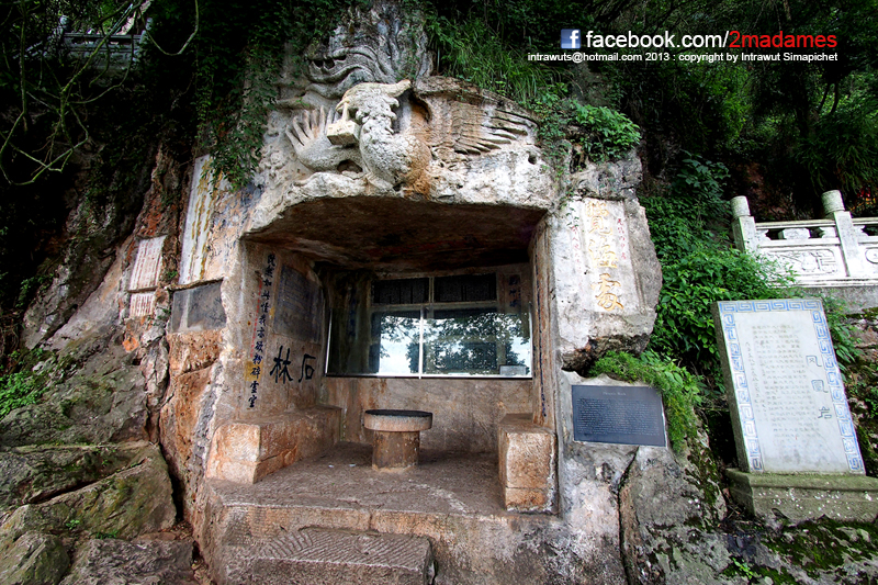 หน้าผาด้านซ้ายในภาพ มองลงไปที่แท้ก็คือถ้ำจิ่วเซียงนั่นเองครับ