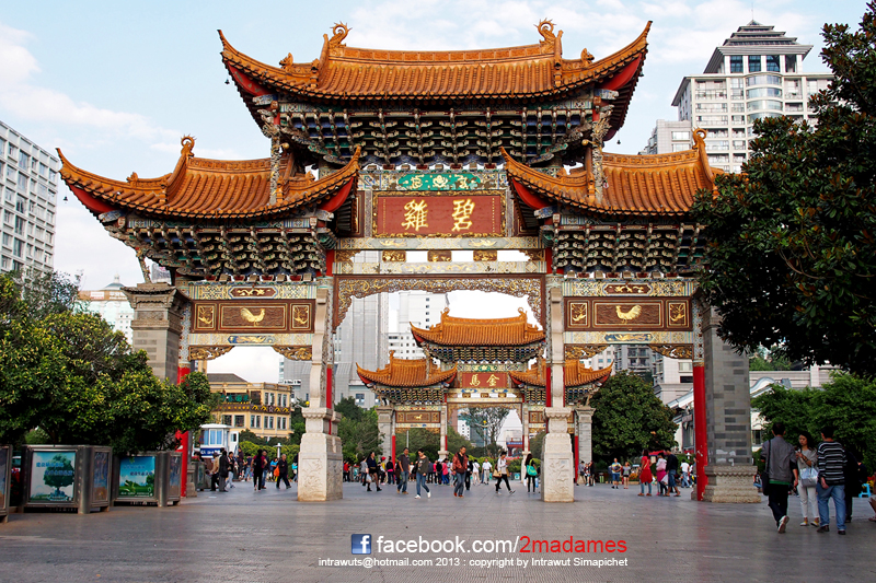 บริเวณประตูม้าทองและประตูไก่มรกต ตั้งอยู่ในใจกลางเมืองคุนหมิง ทั้งสองประตูนี้สร้างขึ้นมากว่า 400 ปีแล้ว และถือว่าเป็นสัญลักษณ์ของนครคุนหมิงอีกแห่งหนึ่ง