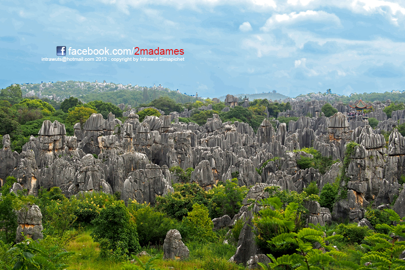 อุทยานป่าหิน ในมณฑลยูนนาน ตั้งอยู่บริเวณทางตอนใต้ห่างจากเมืองคุนหมิง ได้ราว ๆ 90 กิโลเมตร ตั้งอยู่ในอำเภอสือหลินภายในพื้นที่ 350 ตารางกิโลเมตรที่มีภูเขาสูงๆต่ำๆทอดตัวยาวเหยียดออกไปแห่งนี้ มียอดหินและเสาหินใหญ่น้อยตั้งเรียงรายกระจัดกระจายอยู่ตามเนินเขา ป่าหินแห่งนี้จัดว่าเป็นป่าหินที่มีขนาดใหญ่ที่สุดในโลกคือมีพื้นที่เฉพาะส่วนที่เยี่ยมชมราว 12 ตารางกิโลเมตร ภายในป่าหินมีทางแยกมากกว่า 400 สาย มีจุดท่องเที่ยวกว่า 200 จุด จึงได้สมญานามว่า วังวนใต้ทะเล ” หินลักษณะสวยงามแปลกตาเหล่านี้ล้วนเป็นหินปูนที่แต่เดิมอยู่ใต้ผิวน้ำและเนื่องจากการเปลี่ยนแปลงของผิวโลกหินเหล่านี้จึงถูกดันให้โผล่ขึ้นเหนือผิวน้ำกลายเป็นภูมิทัศน์ที่งดงามโดดเด่นป่าหินแห่งนี้ประมาณกันว่า มีอายุราว 270 ล้านปี ป่าหินแห่งนี้แบ่งออกเป็นสองส่วนหลักๆคือป่าหินน้อย (Minor stone forest) และป่าหินใหญ่ (Major stone forest) และอีกส่วนหนึ่งที่มีความงดงามไม่แพ้กันคือ ส่วนของป่าหินนอก(Outer stone forest) ซึ่งอยู่บริเวณรอบนอกของป่าหินน้อยและป่าหินใหญ่ ป่าหินแห่งนี้มีหินรูปทรงแปลกตาที่สวยงามอยู่มากมาย