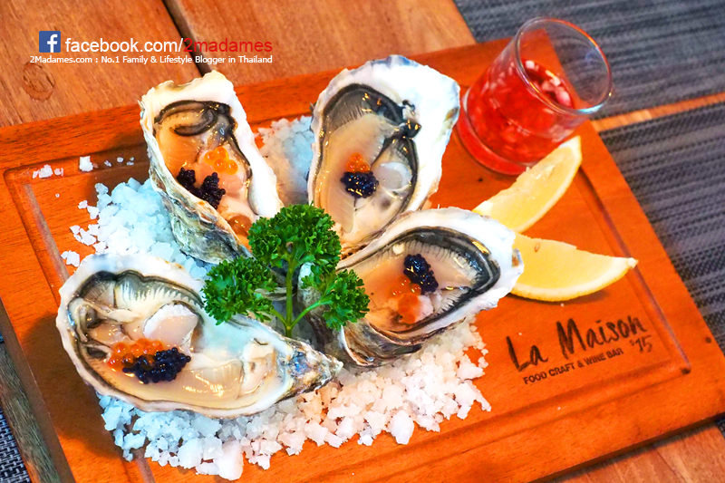 ช่วงที่พวกเราไปทานทางร้านมีจัดโปรโมชั่น Fine De Claire Oyster อยู่พอดี เป็นหอยนางรมสดๆ ตัวใหญ่ๆ ฟิน เดอ แคล์ ที่นำเข้าจากฝรั่งเศส ร้านเค้าเสิร์ฟคู่ไข่ปลาคาร์เวียร์ เลมอนสด และน้ำส้มสายชูไวน์แดงผสมหอมแดงสับ ทานพร้อมๆ กันจะยิ่งทำให้รสชาติดียิ่งขึ้นไปอีก