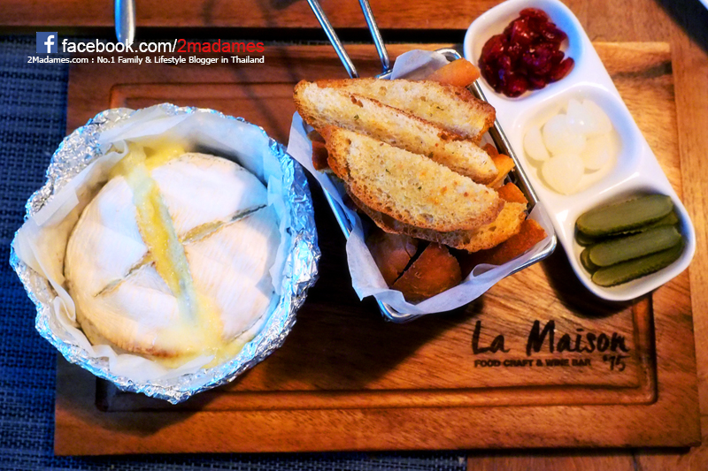 ชีสกอมองแบร์ที่ส่งตรงมาจากฝรั่งเศส เอาชีสทั้งก้อนอบให้ละลายจนได้ชีสเยิ้มๆ รสชาติเค็มหน่อยๆ เสิร์ฟคู่ขนมปังกระเทียม ตอนแรกกะว่าชิมๆ แล้วให้เด็กๆ ทานกันต่อ ปรากฎลองแล้วหยุดแทบไม่ได้เลย