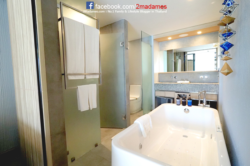 ห้องน้ำแยกส่วนเปียกส่วนแห้ง แยกห้องอาบน้ำและห้องขับถ่าย อ่างล้างมือแบบ His&Her 2 อ่างไม่ต้องแย่งกัน แต่ไฮไลท์คือ มีอ่างจากุสซี่สวยๆให้แช่ตัวกัน และมีฉากเปิดปิดกั้นโซนห้องน้ำกับห้องนอนได้ด้วย