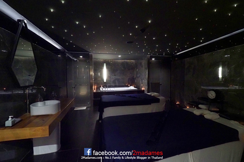 ห้องทรีตเม้นต์เป็นห้องคู่มีแสงดาวระยิบระยับ มีอ่างแช่ตัว ช่างได้บรรยากาศโรแมนติคดีจริง แต่ๆๆถึงเป็นห้องคู่ก็ต้องนวดคนเดียวอยู่ดี เพราะต้องผลัดกันดูแลเบบี้เกล็นจ้า