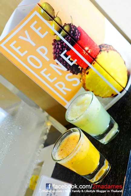 Signature ของ Le Meridien ทุกที่เลย คือ เครื่องดื่ม Eyeopeners แปลตรงๆว่าเครื่องดื่มเปิดตา จะเป็นผลไม้มาผสมกัน รสชาติออกเปรี้ยวๆเผ็ดๆ เรียกความสดชื่นให้ร่างกาย