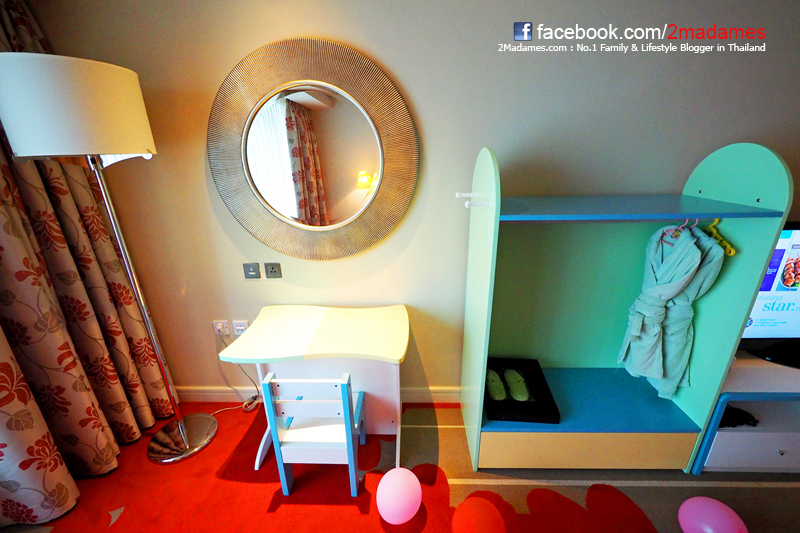 โต๊ะเครื่องแป้ง ข้าวของเครื่องใช้ทั้งรองเท้าแตะ เสื้อคลุมอาบน้ำก็ล้วนแต่เป็นของใช้เด็กๆทั้งนั้น